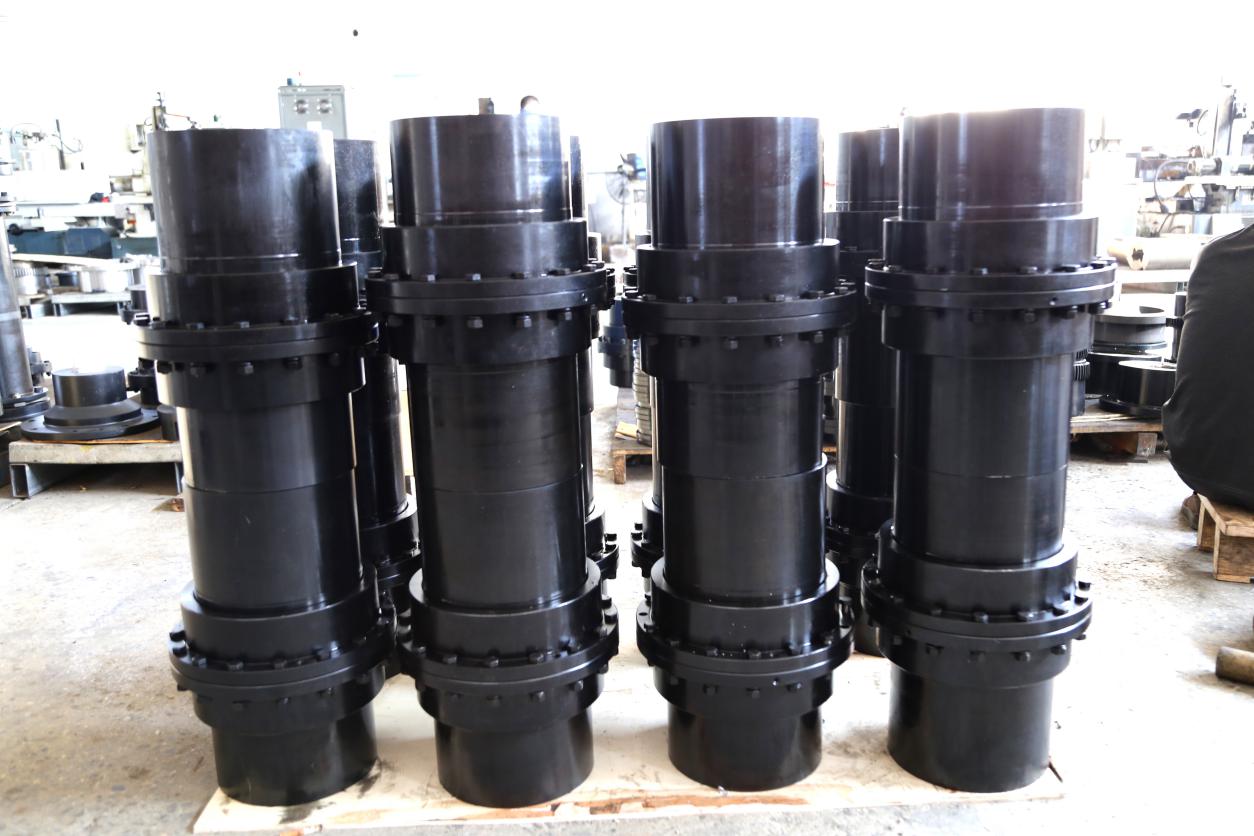 WGT型中間套鼓形齒式聯軸器屬于剛撓性聯軸器,特別適用于低速重載工況,如冶金、礦山、起重運輸等行業、也適用于石油、化工、通用機械等各類機械的軸系傳動。齒式聯軸器是由齒數相同的內齒圈和帶外齒的凸緣半聯軸器等零件組成。外齒分為直齒和鼓形齒兩種齒形,所謂鼓形齒即為將外齒制成球面,球面中心在齒輪軸線上, 齒側間隙較一般齒輪大,鼓形齒聯軸器可允許較大的角位移