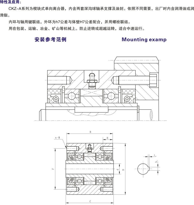 產品描述:CKZ-A系列為楔塊式單向離合器,內含兩套深溝球軸承支撐及油封。依照不同需要,出廠時內含潤滑油或潤滑脂。