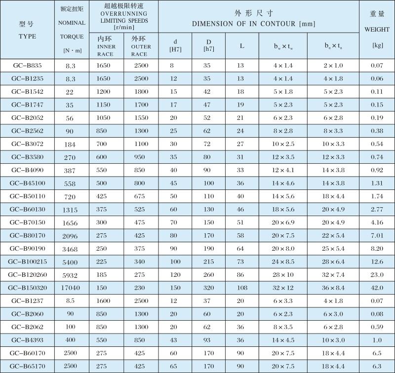 產(chǎn)品描述:GC-B系列為無軸承支撐滾柱式單向離合器,外形尺寸與63系列標(biāo)準(zhǔn)軸承相同。