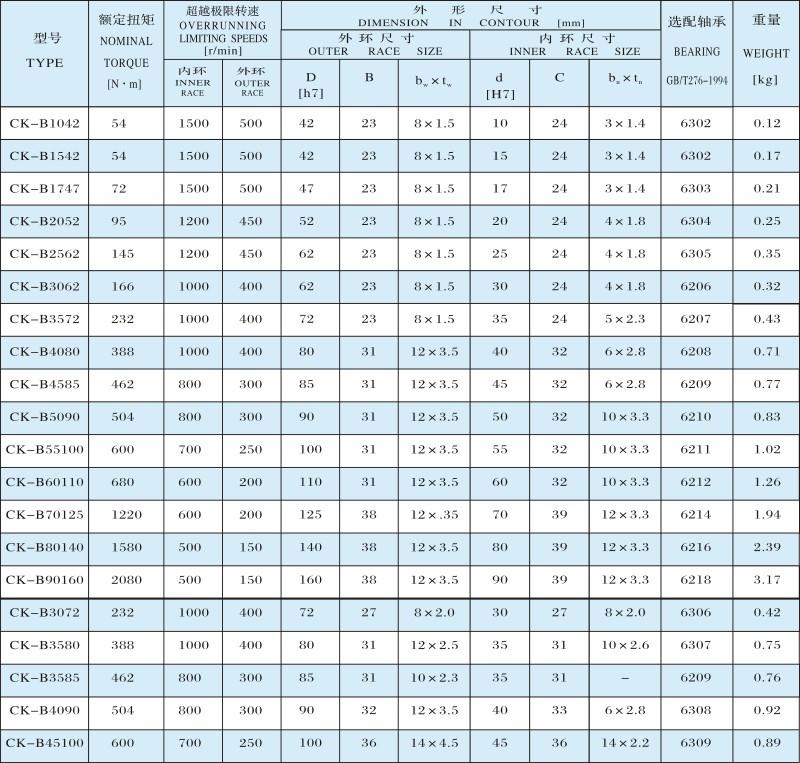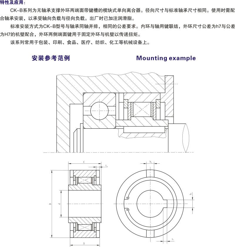 產品描述:CK-B系列為無軸承支撐外環兩端面帶鍵槽的楔塊式單向離合器。