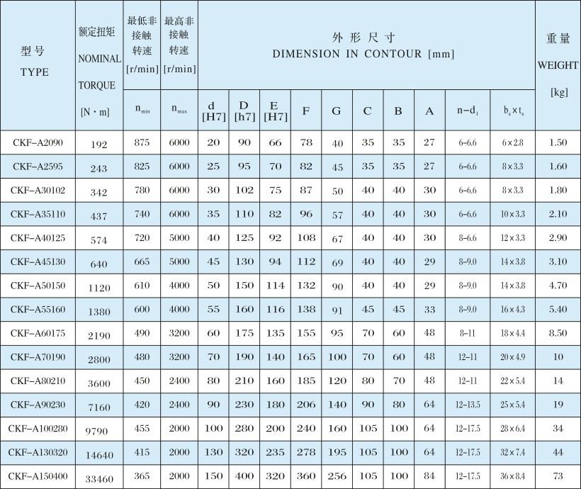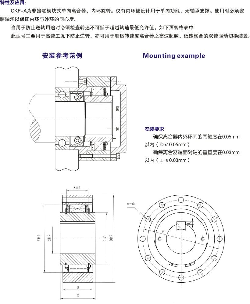 產品描述:CKF-A為非接觸楔塊式單向離合器,內環旋轉。