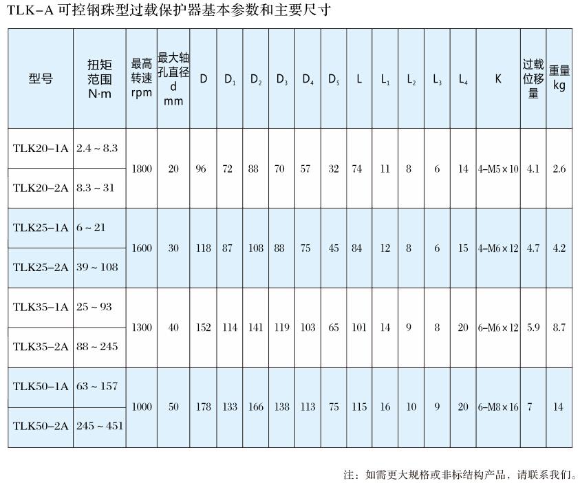 TLK-A可控鋼珠型過載保護器· 產品描述The product description